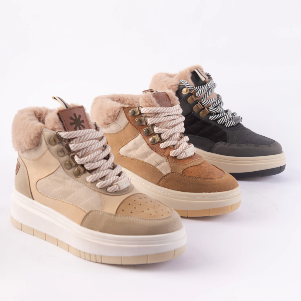 Zapatilla Botita Hills: Calidez y Estilo en Cada Paso. Diseñadas para ser tus mejores aliadas durante todo el invierno, estas botitas se destacan por su interior de piel extra suave, super cálidas y acogedoras. Su exterior combina materiales como gamuza, suede matelassé ( que añade un toque ultra acolchonado y confortable) además, los detalles en PU aportan un acabado moderno que realza su diseño. Los divertidos cordones tubulares, junto con los alpinos que les dan un toque montañésco, hacen de la Hills un calzado ideal que mezcla la aventura de la montaña con el estilo de la ciudad. Su suela es en TR, viene pegada y cosida para una mayor durabilidad del producto. Ultra resistente, comodo y firme al caminar.